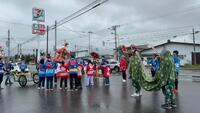 スタート時は雨で、最初のステージは小学校体育館に変更した事からお客さんは少なかったですが、タレントショー「たむたむ・沙羅」が開始直前に雨がやみ、開始後には晴れてきた為お客さんも会場にたくさん入り、おおいに盛り上がりました。