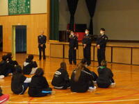 網走刑務所の刑務官の方々に来校していただき、不審者などに対する護身術を3つ教えていただきました。生徒たちはペアになって、身を守る術の練習に取り組んでいました。術の中には、複雑な動きを要するものもありましたが、真面目に取り組む様子が見られました。