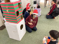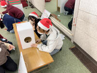 定時制は、個別ゲームとして「箱の中身はなんだろな?」と「クリスマス玉入れ」を準備しました。当日は、それぞれのゲームで列ができるほど大人気のゲームとなり、子ども達に楽しく遊んでもらうことができました。