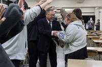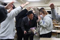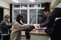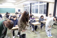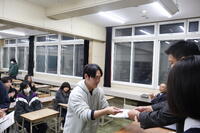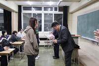 離任式では、離任される先生方に向けて生徒から感謝の言葉を贈りました。そして、花束の贈呈が行われました。その後、全校生徒で花道を作り、離任されるお二人の門出をお祝いしました。(文責:髙原)